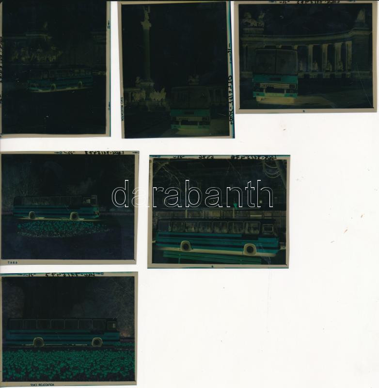 Beschreibung: cca 1970 Egy autóbuszról készült reklámsorozat Budapest nevezetes pontjain, 6 db színes professzionális negatív, 6x7 cm