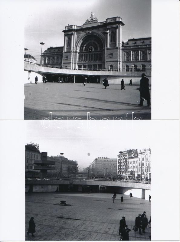 cca 1973 Budapest, Baross tér, az aluljáró rendszer átadása után, 16 db korabeli negatívról készült mai nagyítások, 10x10 cm-es képméret, 15x10 cm-es fotópapíron hozzáadva 1 db 6x9 cm-es fotót az 1960-as évekből