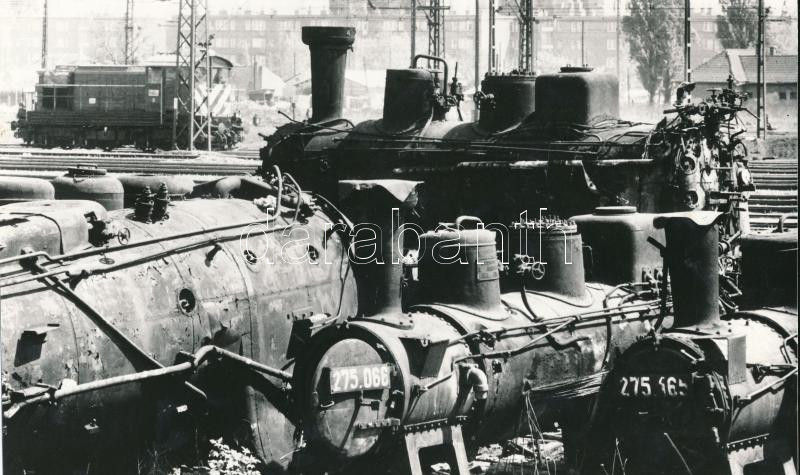 Beschreibung: cca 1977 Budapest, Rákosrendezői pályaudvar, itt gyűjtötték össze a régi, használaton kívüli gőzmozdonyokat, 15x23 cm