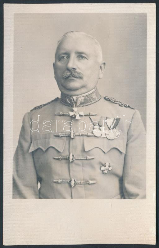 Beschreibung: dr. Bartóffy János rendőrtábornok, főkapitány helyettes fotója kitüntetésekkel, 13x8cm
