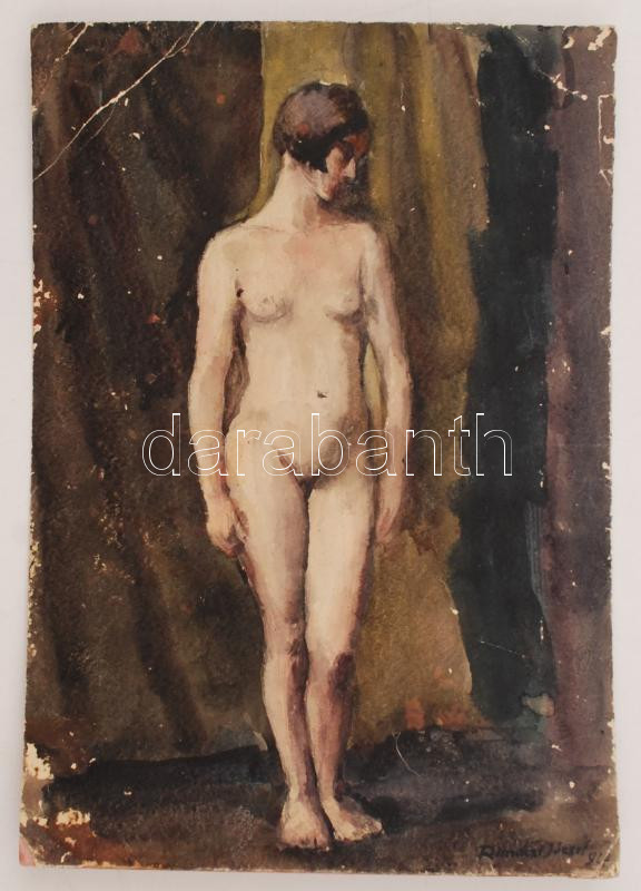 1924 Rimdezi József jelzéssel: Női akt, akvarell, karton,hibás, 33x23c... https://www.darabanth.com/de/250-Fernauktion/250.0/Andere-Sammelgebiete/Gemalde-und-Grafiken~1400006/1924-Rimdezi-Jozsef-jelzessel-Noi-akt-akvarell-karton-hibas-33x23cm~II1204864