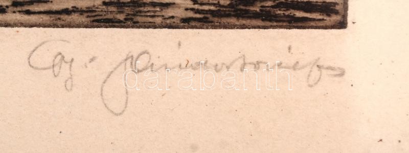 Beschreibung: Olvashatatlan jelzéssel: Velence. Rézkarc, papír, üvegezett keretben, 12×16 cm
