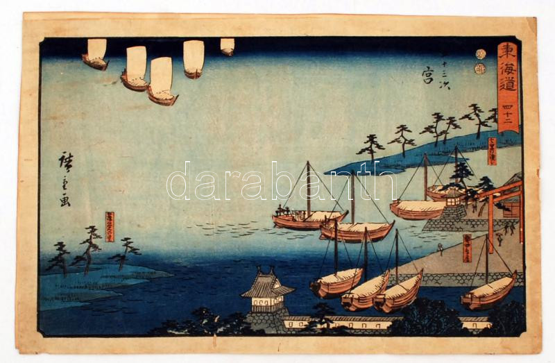cca 1890 jelzett japán színes fametszet, apró szakadásokkal, 21×34 cm https://www.darabanth.com/de/250-Fernauktion/250.0/Andere-Sammelgebiete/Gemalde-und-Grafiken~1400006/cca-1890-jelzett-japan-szines-fametszet-apro-szakadasokkal-21C39734-cm~II1207067