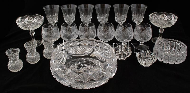 Beschreibung: Hatalmas üveg tétel: poharak, tálkák, vázák, néhány ólomkristály tárgyon apró csorba, több mint 25 db