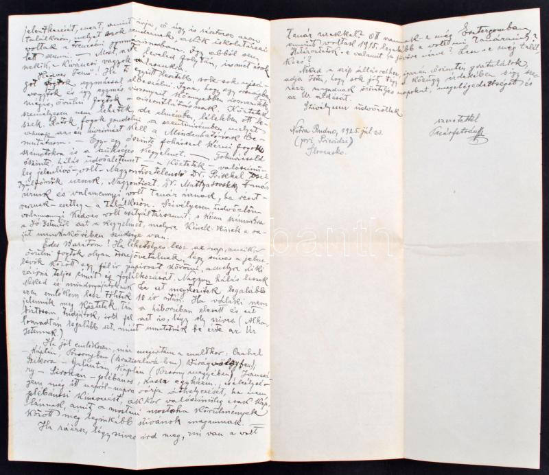 1925 Pecár István Nyitra-Rudno-i plébános 2,5 oldalas kézzel írt levele