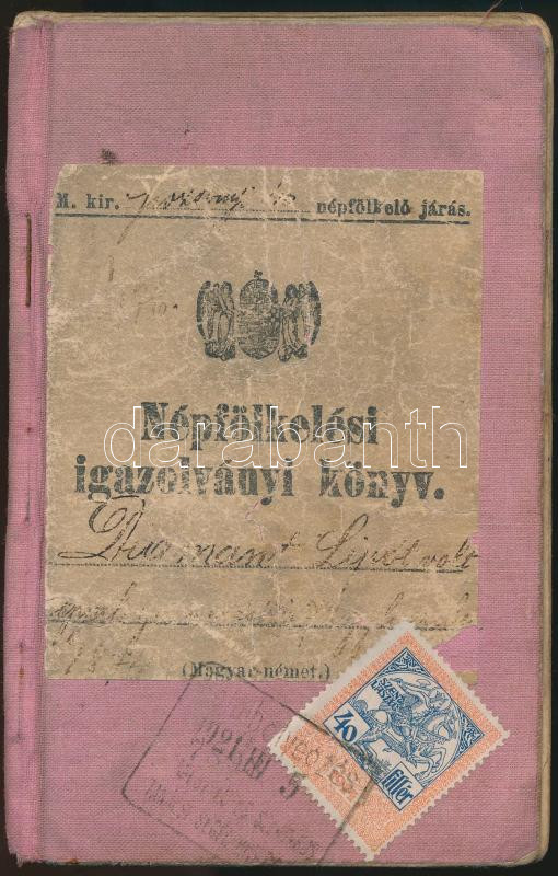 Beschreibung: 1907 Népfölkelési igazolványi könyv izraelita vallású személy részére kiállítva, kissé viseltes állapotban, pp.:40, 15x10cm