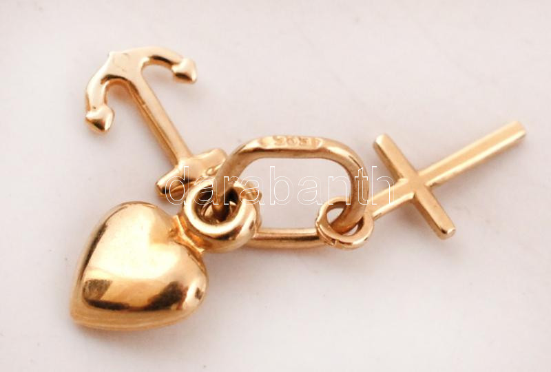 Arany horgony-szív-kereszt medál, Au., 14K, 0,5gr.,jelzett/ Gold anchor- heart- cross pendant, Au. 14K, 0,5gr., marked