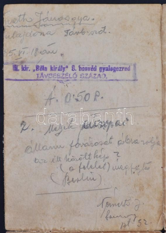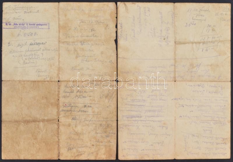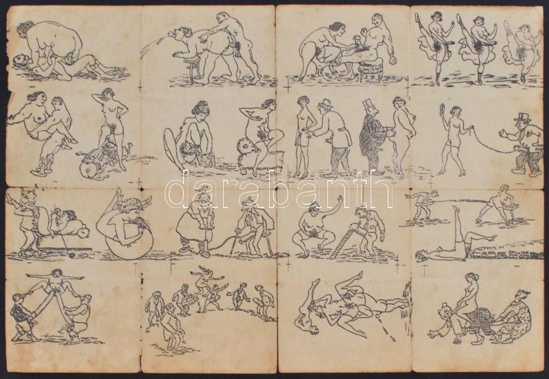 Nagyméretű erotikus nyomat, erősen viseltes állapotban, hátulján a m. kir. "Béla király" 8. honvéd gyalogezred távbeszélő századának feljegyzéseivel, nevekkel, stb., 30×42 cm