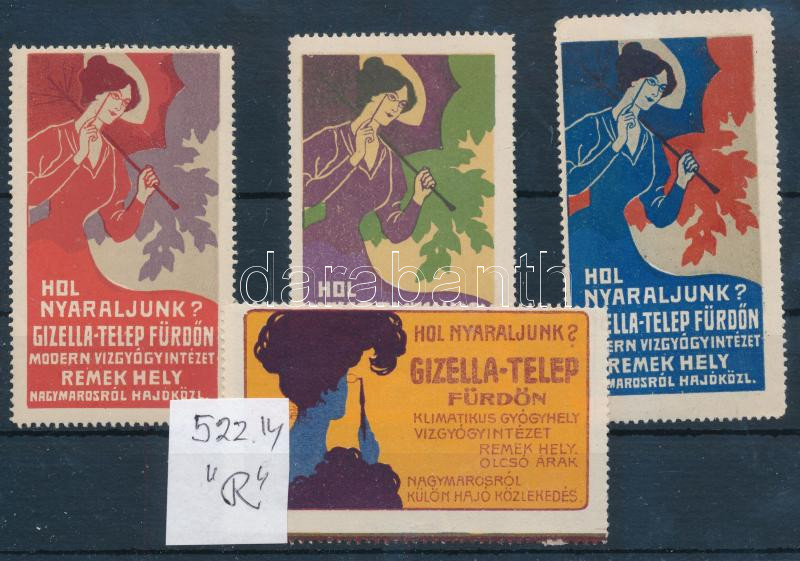 Beschreibung: 1905 Gizella-telep fürdő 4 db levélzáró