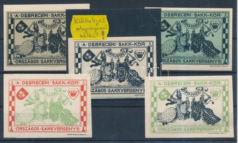 Beschreibung: 1913 Debreceni Sakk-kör Sakkverseny 5 db levélzáró, közte R