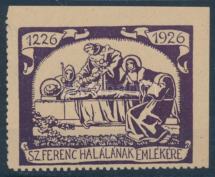 1926 Szent Ferenc halálának emlékére levélzáró (kis szakadás) https://www.darabanth.com/de/250-Fernauktion/250.0/Andere-Sammelgebiete/Paraphilatelie~1400030/1926-Szent-Ferenc-halalanak-emlekere-levelzaro-kis-szakadas~II1205044