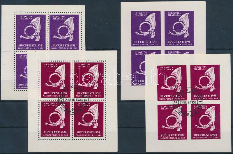 Beschreibung: Bukaresti bélyegkiállítás 4 klf levélzáró kisív