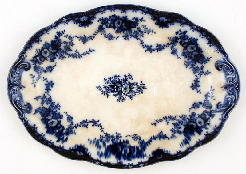 Beschreibung: Antik fajansz tál, máz alatti kékkel, hibátlan, 35×25 cm