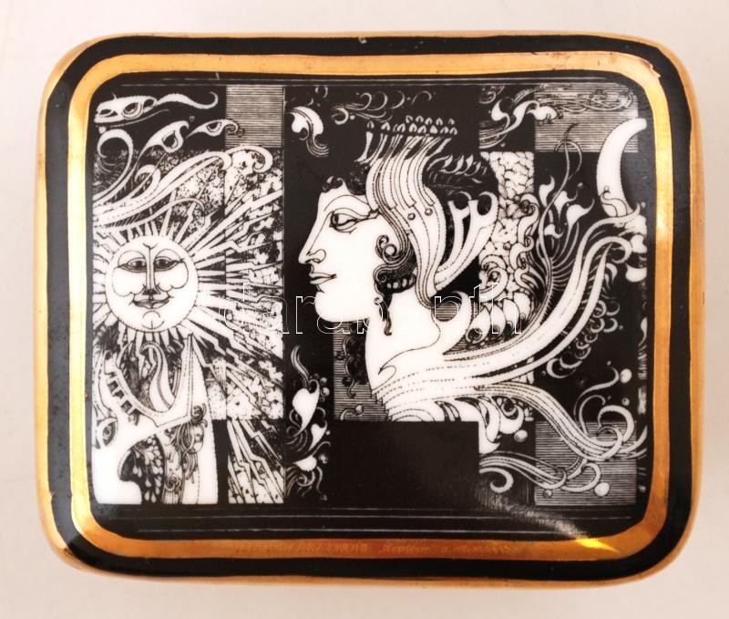 Beschreibung: Hollóházi Szász Endre tervezte porcelán doboz, matricás, jelzett, hibátlan, 7×8 cm