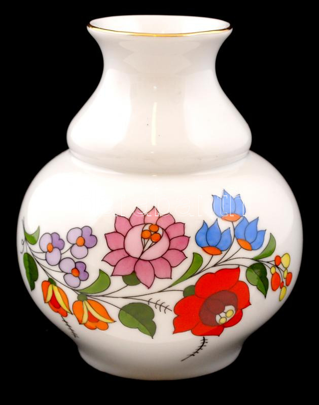 Kalocsai virág mintás váza, kézzel festett, jelzett, hibátlan, m:14 cm https://www.darabanth.com/de/250-Fernauktion/250.0/Andere-Sammelgebiete/Porzellan~1400015/Kalocsai-virag-mintas-vaza-kezzel-festett-jelzett-hibatlan-m14-cm~II1205052
