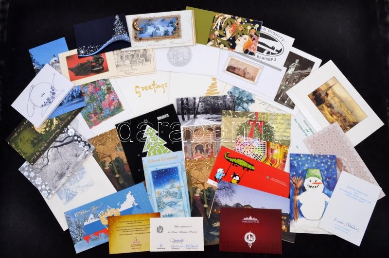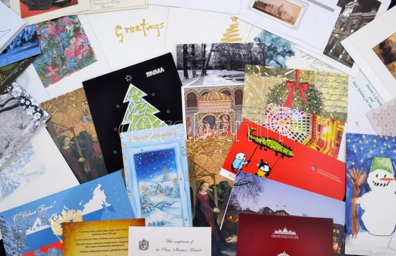 54 db karácsonyi üdvözlőlap a 2011. évből magyar és külföldi politikusok, miniszterek, állami vezetők és tisztviselők aláírásával(Alexandru Codreanu, Jari Vilén,Arvydas Sekmokas, Sztáray Péter, Christian Mühlethaler, Pintér Sándor, stb.)