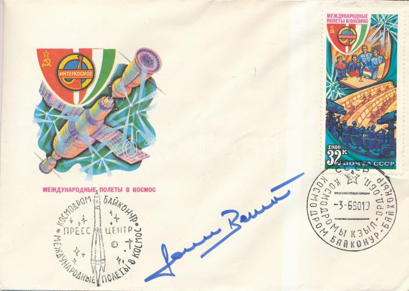 Farkas Bertalan az egyetlen magyar űrhajós, az Intercosmos fedélzetén járt az űrben 1978-ban. - - aláírása egy Szovjet -Magyar közös űrrepülés első napos borítékon.
