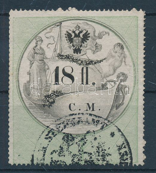 1854 CM okmánybélyeg 18fl (~45.000) https://www.darabanth.com/de/250-Fernauktion/250.0/Andere-Sammelgebiete/Stempelmarken~1400032/1854-CM-okmanybelyeg-18fl-7E45000~II1204597