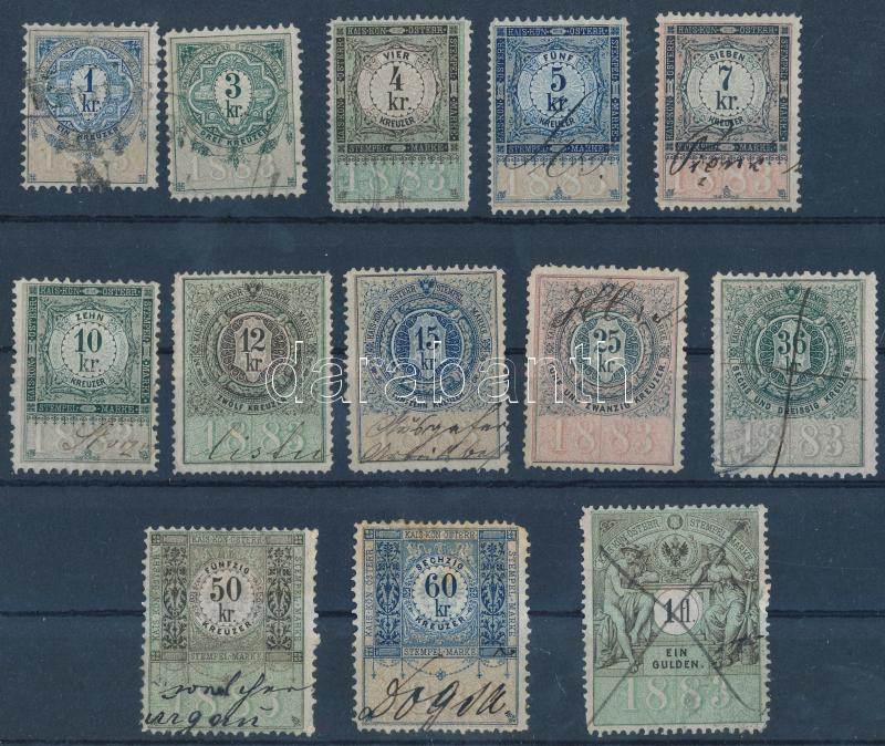 Beschreibung: 1883 13 db okmány- és illetékbélyeg