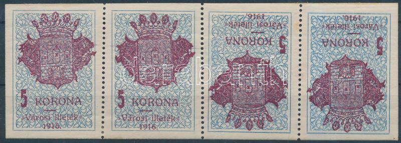 Beschreibung: 1916 Székesfehérvár városi illetékbélyeg 5K 4-es csík, gépszínátnyomattal