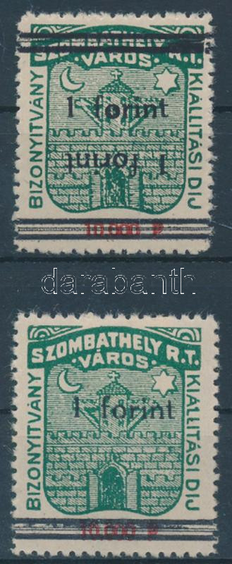 Beschreibung: 1947 Szombathely városi illetékbélyeg fordított és kettős felülnyomással + támpéldány