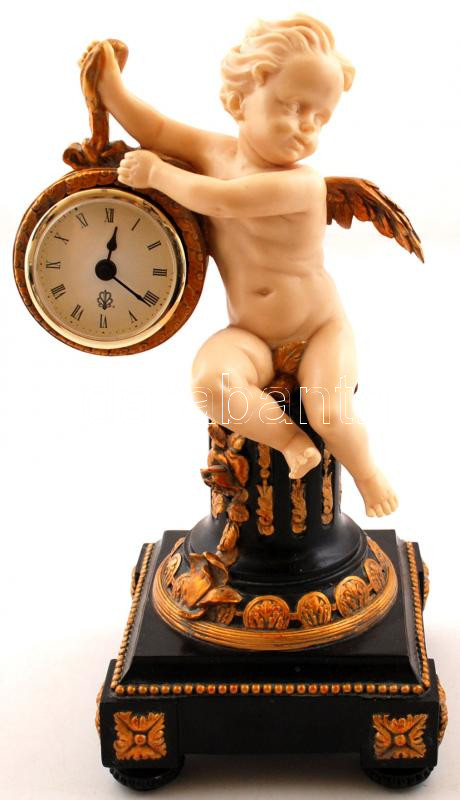 Beschreibung: Modern, díszes, puttós asztali óra, elemes, m: 32,5 cm