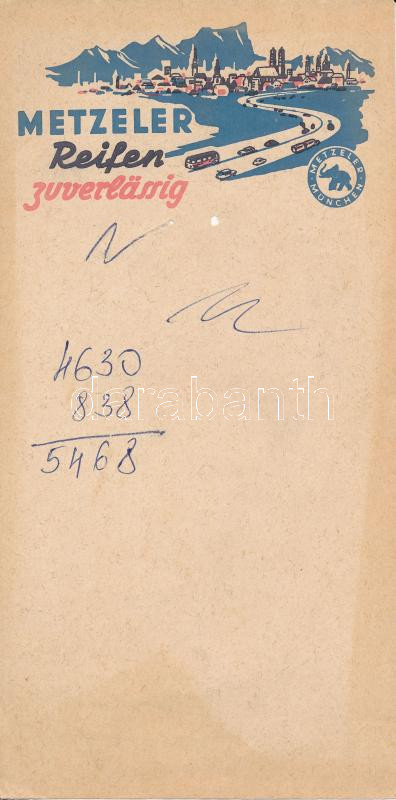 Metzler Reisen számolócédula https://www.darabanth.com/de/250-Fernauktion/250.0/Andere-Sammelgebiete/Werbungen~1400038/Metzler-Reisen-szamolocedula~II1204009