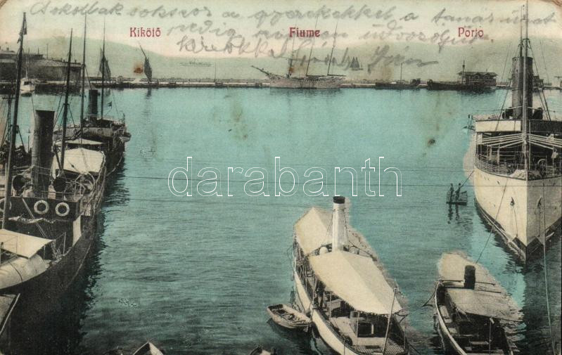 Fiume, kikötő, gőzhajók / port, steamships (EK) https://www.darabanth.com/de/250-Fernauktion/250.0/Ansichtskarten/Kroatien~200010/Fiume-kikoto-gozhajok-port-steamships-EK~II1200630