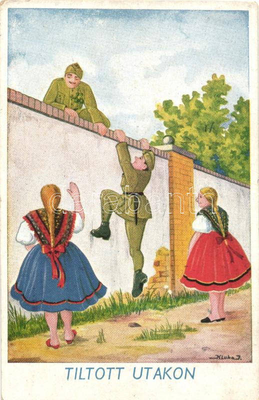 'Tiltott utakon', katonai humor, folklór / 'On forbidden roads', milit... https://www.darabanth.com/de/250-Fernauktion/250.0/Ansichtskarten/Militaria~200090/Tiltott-utakon-katonai-humor-folklor-On-forbidden-roads-military-humour-folklore-s-Kluka~II1204847