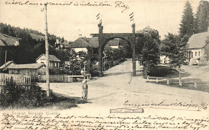 Borszékfürdő; bejárat Borszék fürdőbe / entrance to Borszék fürdő (fa) https://www.darabanth.com/de/250-Fernauktion/250.0/Ansichtskarten/Siebenburgen~200007/Borszekfurdo-bejarat-Borszek-furdobe-entrance-to-Borszek-furdo-fa~II1204960