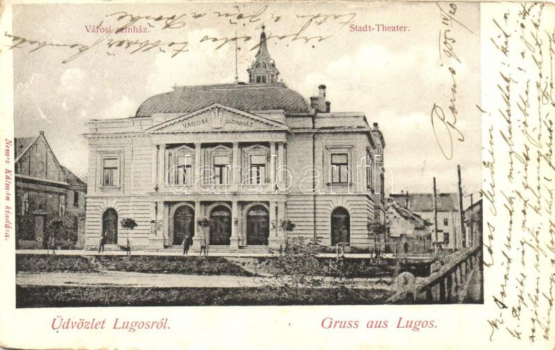Lugos, Lugoj; városi színház, Nemes Kálmán kiadása / city theater (fa) https://www.darabanth.com/de/250-Fernauktion/250.0/Ansichtskarten/Siebenburgen~200007/Lugos-Lugoj-varosi-szinhaz-Nemes-Kalman-kiadasa-city-theater-fa~II1204509