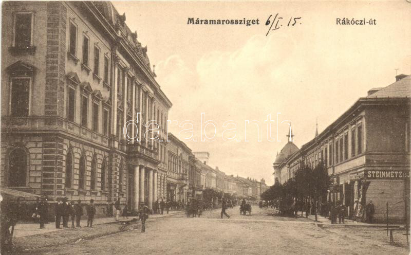 Máramarossziget, Sighetu Marmatei; Rákóczi út, Steinmetz és társa üzle... https://www.darabanth.com/de/250-Fernauktion/250.0/Ansichtskarten/Siebenburgen~200007/Maramarossziget-Sighetu-Marmatei-Rakoczi-ut-Steinmetz-es-tarsa-uzlete-street-shop-EK~II1204537