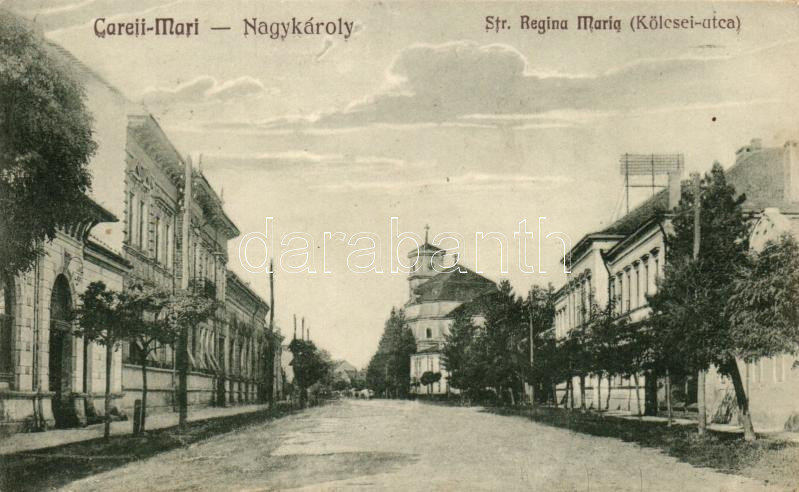 Nagykároly, Carei; Kölcsei utca / street (vágott / cut) https://www.darabanth.com/de/250-Fernauktion/250.0/Ansichtskarten/Siebenburgen~200007/Nagykaroly-Carei-Kolcsei-utca-street-vagott-cut~II1200892