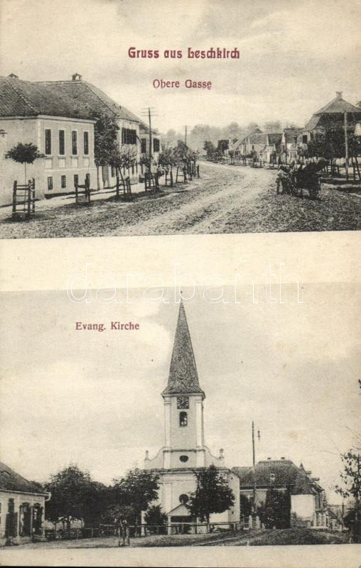 Beschreibung: Újegyház, Leschkirsch, Nocrich; utca, evangélikus templom / street, Lutheran church (EM)