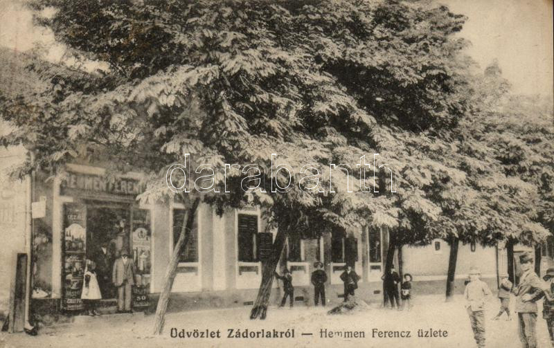 Beschreibung: Zádorlak, Zadareni; Hemmen Ferenc üzlete / shop (r)