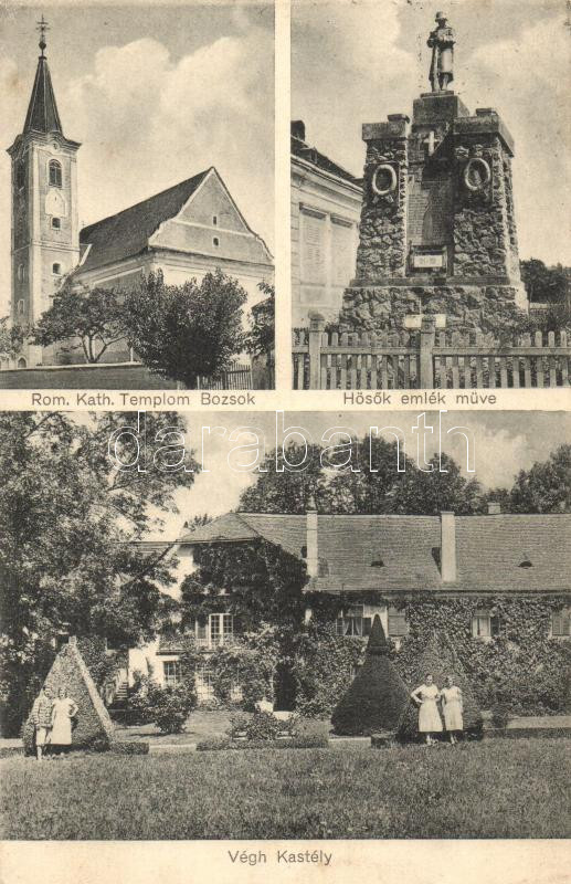 Bozsok, Hősök emlékműve, Végh kastély, Grünwald József kiadása https://www.darabanth.com/de/250-Fernauktion/250.0/Ansichtskarten/Ungarn~200006/Bozsok-Hosok-emlekmuve-Vegh-kastely-Grunwald-Jozsef-kiadasa~II1202833