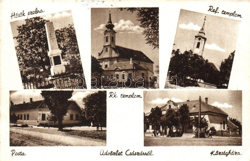 Császár községháza, posta, Hősök szobra (EK) https://www.darabanth.com/de/250-Fernauktion/250.0/Ansichtskarten/Ungarn~200006/Csaszar-kozseghaza-posta-Hosok-szobra-EK~II1202445