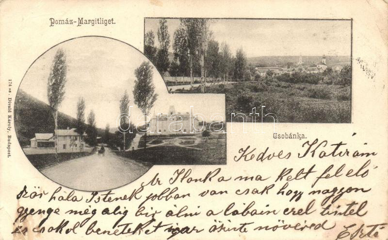 Beschreibung: Pomáz, Margitliget, Csobánka, Ottokár hadi árvaház, kiadja Divald Károly (kis szakadás / small tear)