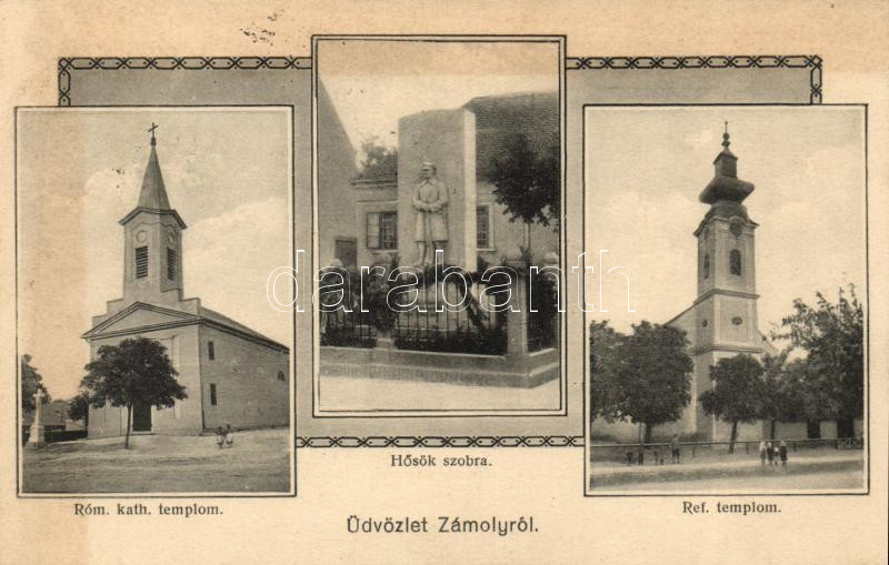 Zámoly, Római katolikus és református templom, Hősök szobra; Szilágyi ... https://www.darabanth.com/de/250-Fernauktion/250.0/Ansichtskarten/Ungarn~200006/Zamoly-Romai-katolikus-es-reformatus-templom-Hosok-szobra-Szilagyi-Arthur-fenykepesz~II1207397