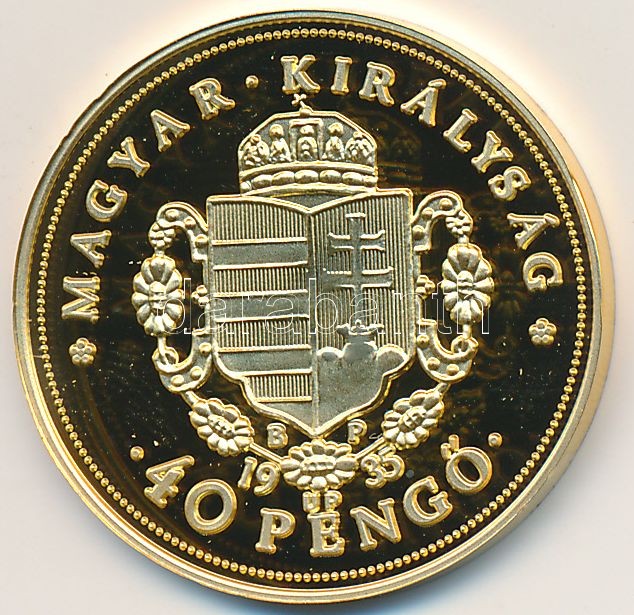Beschreibung: DN "Magyar aranypénzek utánveretben - Rákóczi Ferenc jubileumi 40 pengő" aranyozott Ag emlékérem (5.5g/0.999) T:PP
