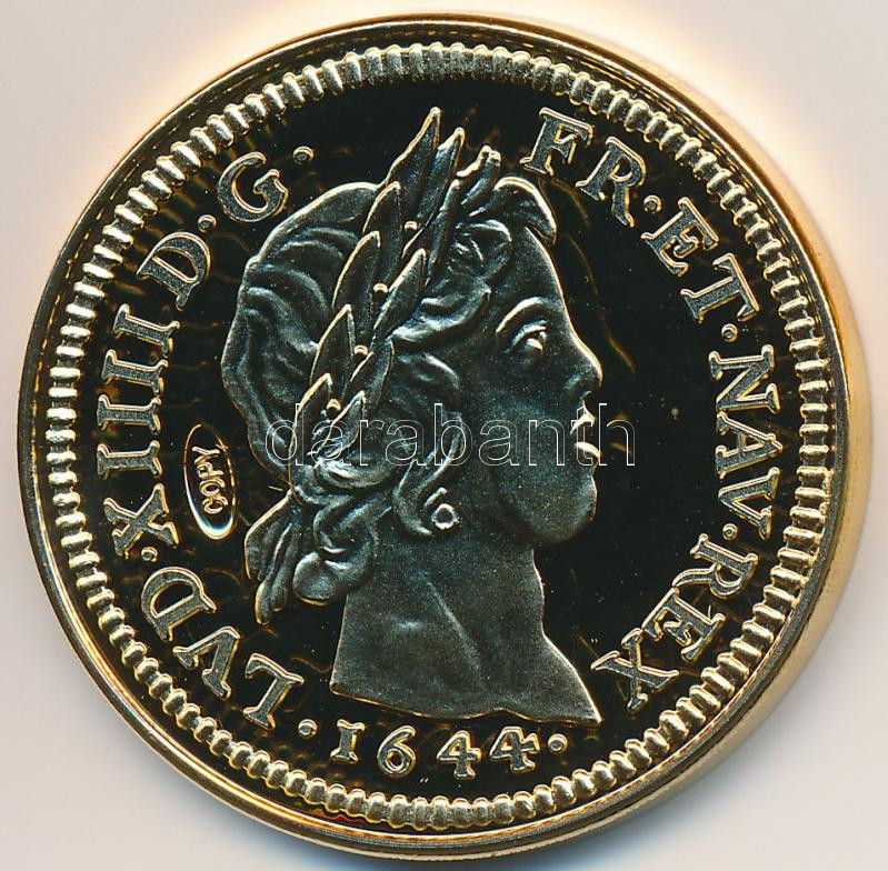 Beschreibung: DN "Történelmi aranypénzek - XIV. Lajos 1644. 4 Louis d'Or" aranyozott Cu-Ni utánveret "COPY" beütéssel, tanúsítvánnyal (20g/38,61mm) T:PP