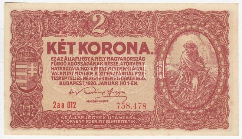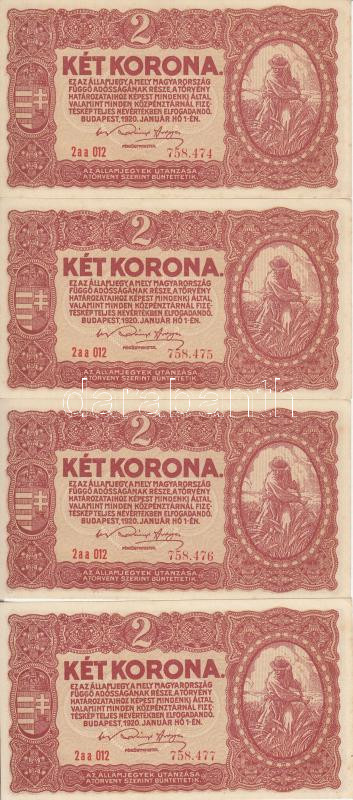 1920. 2K (5x) sorszámkövetők T:I,I- https://www.darabanth.com/de/250-Fernauktion/250.0/Numismatik/Ungarische-Banknoten~7/1920-2K-5x-sorszamkovetok-TI-I-~II1200173