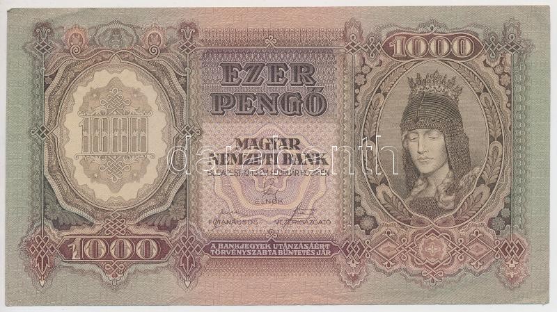 Beschreibung: 1943. 1000P (3x) sorszámkövetők, nyomdai papírránccal T:I-