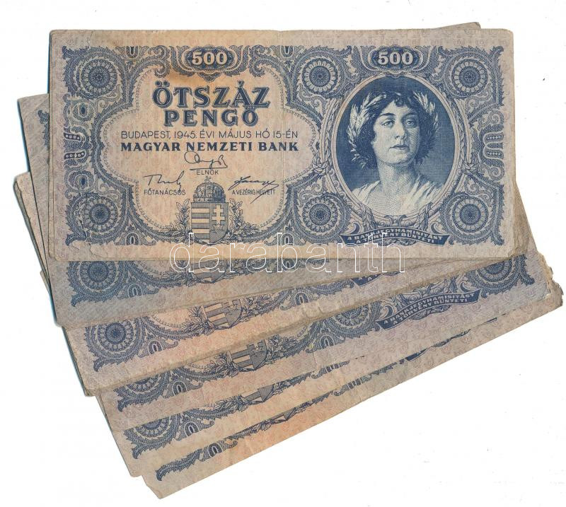 1945. 500P (30x) T:vegyes https://www.darabanth.com/de/250-Fernauktion/250.0/Numismatik/Ungarische-Banknoten~7/1945-500P-30x-Tvegyes~II1207635