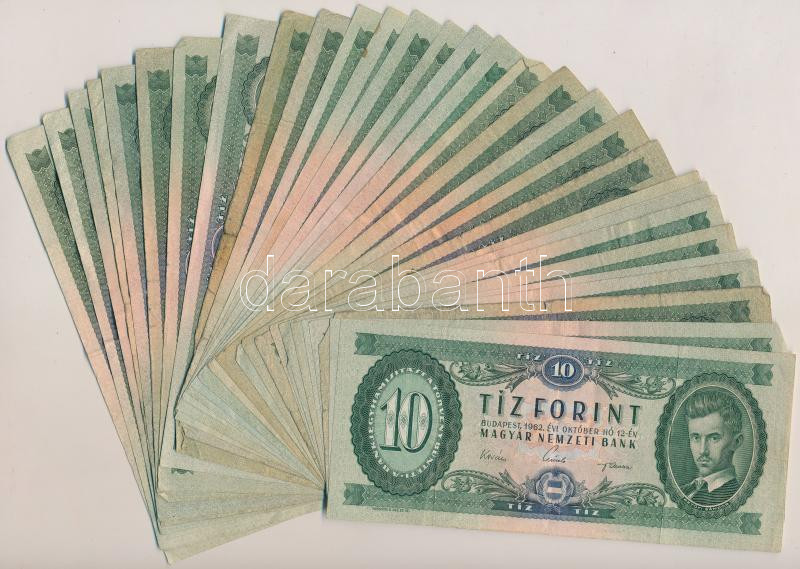 1962-1975. 10Ft (30x) T:vegyes https://www.darabanth.com/de/250-Fernauktion/250.0/Numismatik/Ungarische-Banknoten~7/1962-1975-10Ft-30x-Tvegyes~II1208353