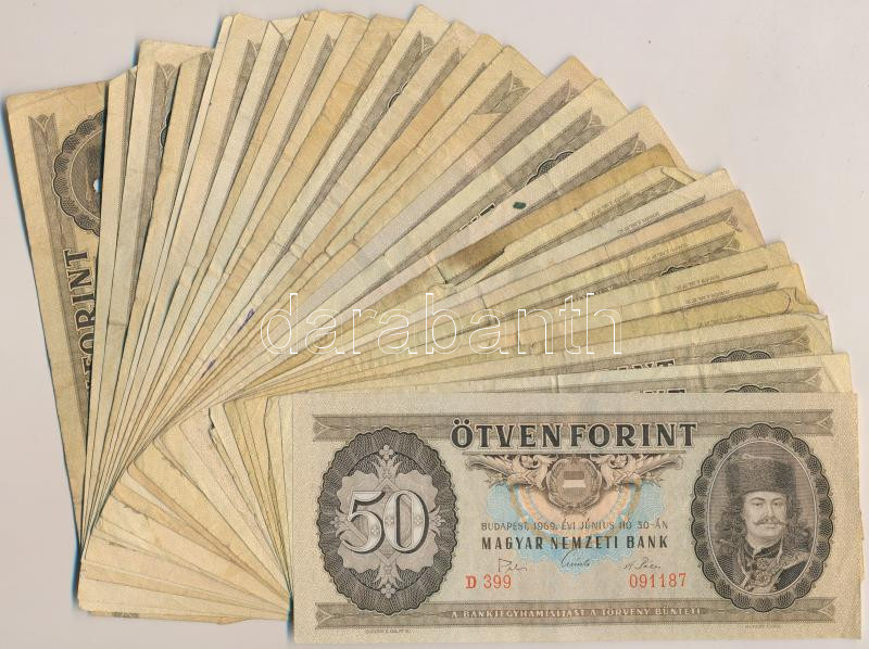 1969-1989. 50Ft (30x) T:vegyes https://www.darabanth.com/de/250-Fernauktion/250.0/Numismatik/Ungarische-Banknoten~7/1969-1989-50Ft-30x-Tvegyes~II1208125