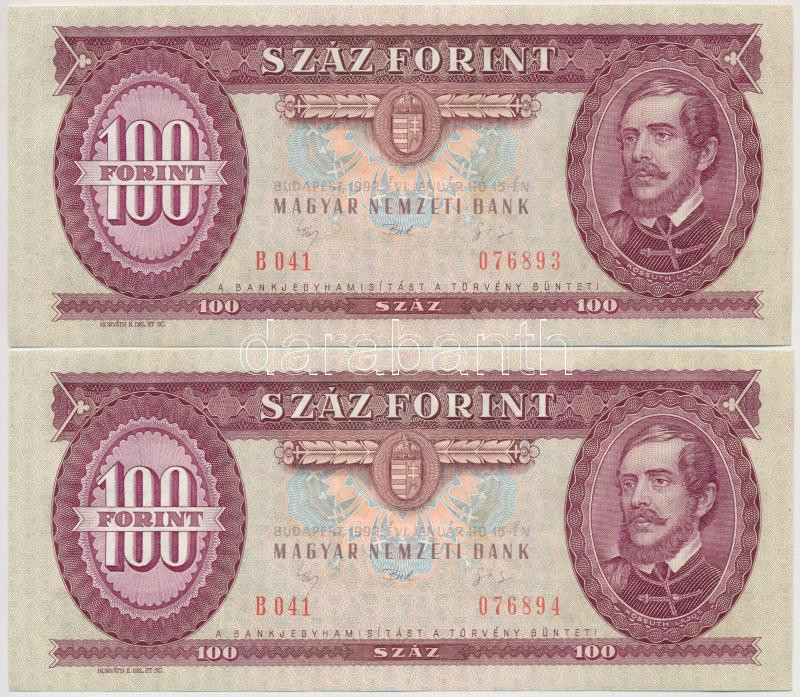 Beschreibung: 1992. 100Ft (2x) sorszámkövetők T:II mindkettőnél ropogós papír