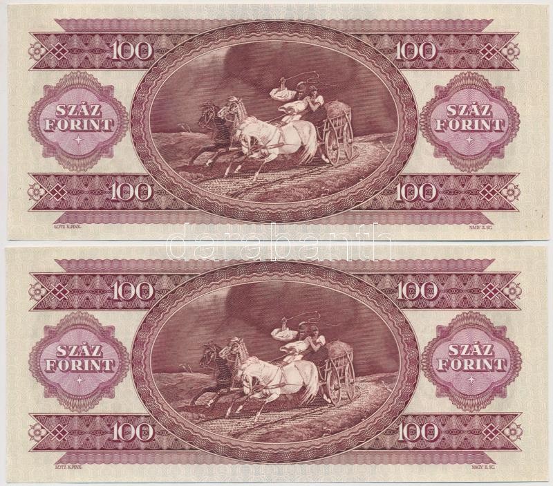 1992. 100Ft (2x) sorszámkövetők T:II mindkettőnél ropogós papír https://www.darabanth.com/de/250-Fernauktion/250.0/Numismatik/Ungarische-Banknoten~7/1992-100Ft-2x-sorszamkovetok-TII-mindkettonel-ropogos-papir~II1205652