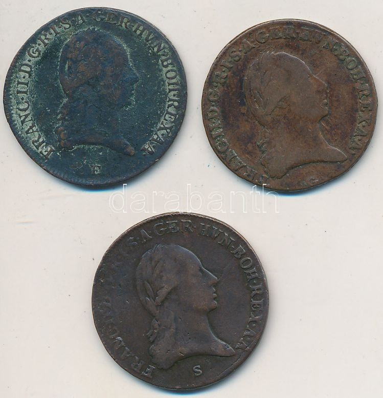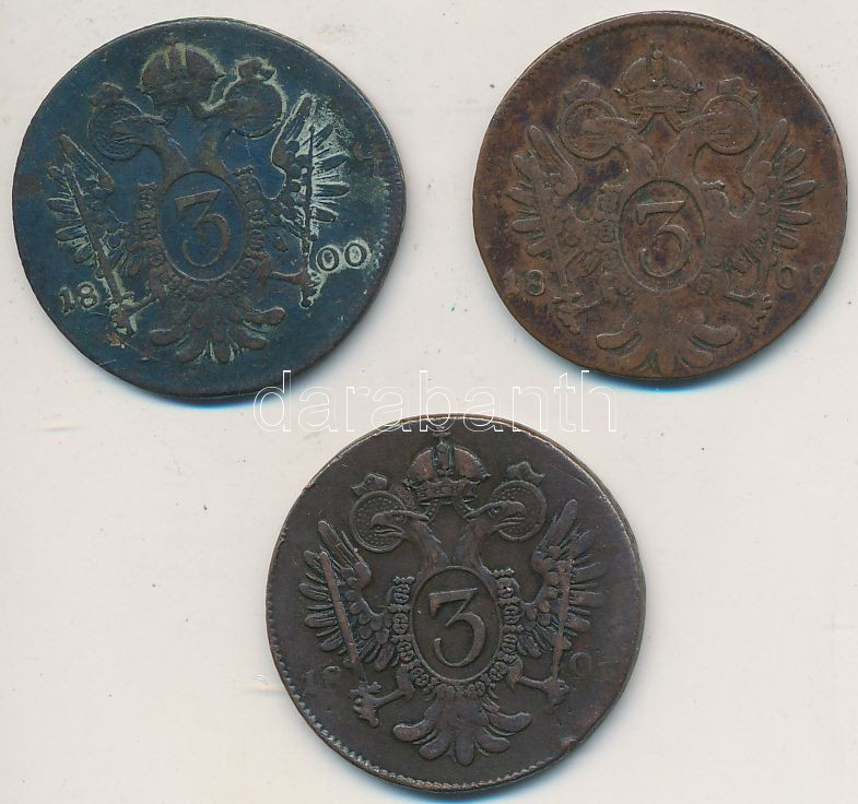 1800E+G+S 3kr Cu "I. Ferenc" (3xklf) T:2-,3 https://www.darabanth.com/de/250-Fernauktion/250.0/Numismatik/Ungarische-Munzen~9/1800EplusGplusS-3kr-Cu-I-Ferenc-3xklf-T2-3~II1200955