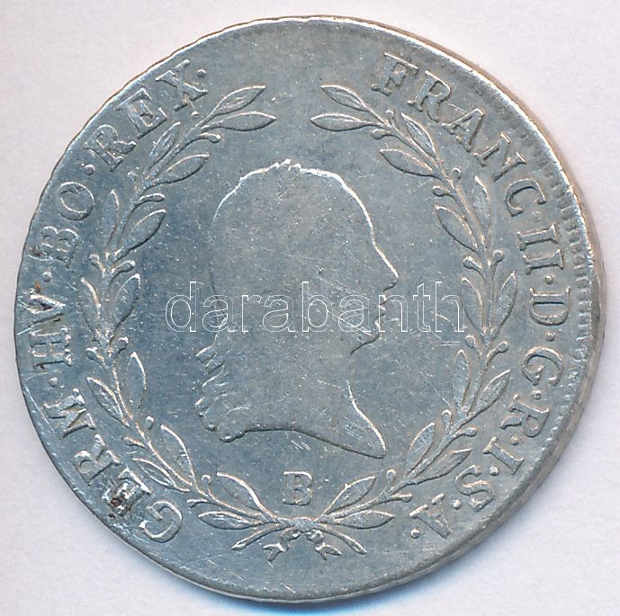 1803B 20kr Ag "I. Ferenc" T:2-,3 https://www.darabanth.com/de/250-Fernauktion/250.0/Numismatik/Ungarische-Munzen~9/1803B-20kr-Ag-I-Ferenc-T2-3~II1200310